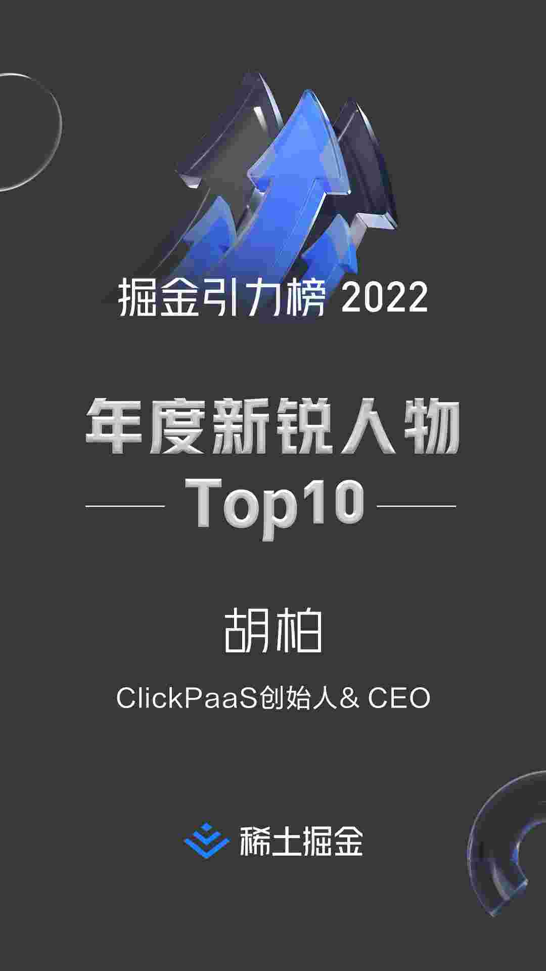 2022年1月6日,,,稀土掘金社区第一届「掘金未来大会」成功举办,,会上发布了“2022 稀土掘金引力榜 年度新锐人物”榜单,,,,上海爱湃斯科技有限公司(简称钱能钱包)创始人及CEO胡柏实力入选年度新锐人物TOP 10。。。。